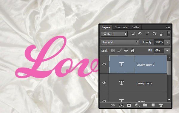 Дважды продублируйте слой с текстом. Уменьшите значение Заливки (Fill) для второго дубликата слоя до 0.