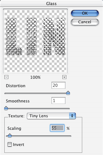 Сейчас мы будем создавать бриллиантовый эффект. Выбираем Filter>Distort>glass (Фильтр>Искажение>Стекло).