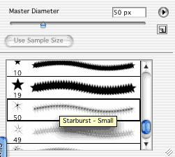 Ведь настоящие бриллианты всегда ярко блестят, вот мы и нашим придадим эффект искрения, для этого возьмем звездную кисточку с соответствующими параметрами и украсим наши алмазики.