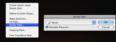 Шаг 6. Теперь щёлкните П/К мыши по изображению и выберете Stroke Path (Обвести контур). Можете повторить операцию 2 или 3 раза, но с другими настройками кисти и другого цвета, немного с серым оттенком (можно даже на новом слое).