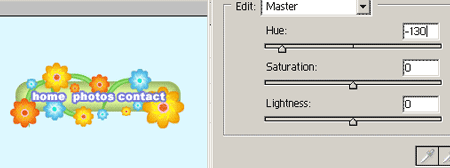 Шаг 20. Для большей выразительности, к цветкам можно применить Цветовой тон и насыщенность: Image > Adjustments > Hue / Saturation (Цветовой тон/Насыщенность).
