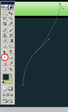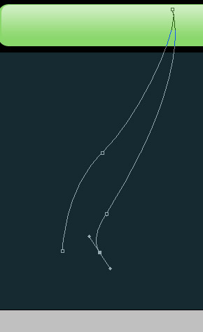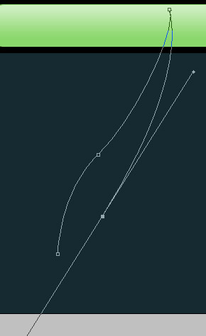 Шаг 6. Первую кривую начните рисовать, располагая ее немного ниже зеленого прямоугольника.