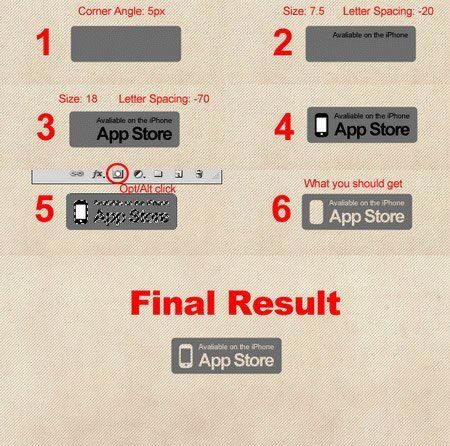размером 147х48 пикселей цветом #6d6d6d. Шрифтом Myriad Pro напишите "Available on the iPhone". Размер – 7,5pt. Потом напишите "iTunes Store" размером 18pt.