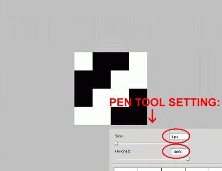 Нужно создать узор. Создайте новый документ размером 4х4 пикселя. Инструментом Карандаш
