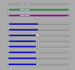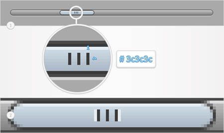Дублируйте группу Green Slider, переименуйте копию в Blue Slider и перетащите дубликат на несколько пикселей вниз, как показано на скриншоте. Снова откройте окно стилей слоя для длинного прямоугольника с круглыми углами и отредактируйте Наложение градиента (Gradient Overlay) и Обводку (Stroke). Настройки смотрите ниже на скриншотах.
