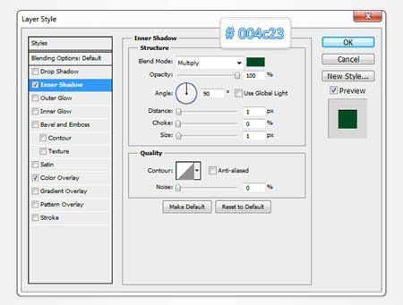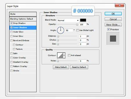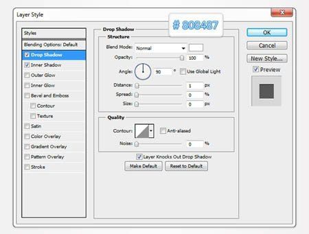 Примечание переводчика: автор не указывает настройки для стиля Тень, поэтому вы можете воспользоваться настройками из шага 5, поставив угол на 90 градусов.
