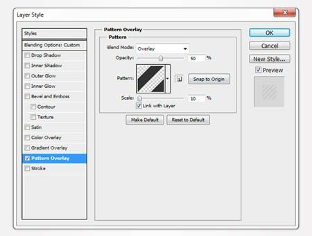 (Fill) на 0%. Откройте стили слоя и настройте параметр Наложение узора (PatternOverlay). Настройки смотрите ниже.