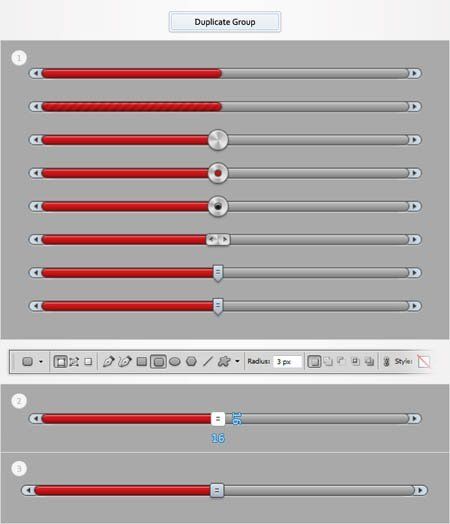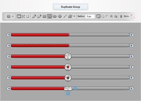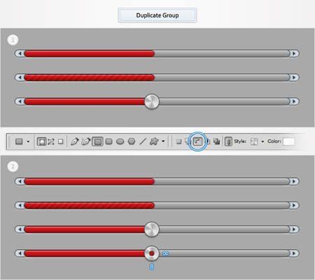 Снова дублируйте оригинальную группу Red Slider и переместите копию вниз. Активируйте инструмент Прямоугольник