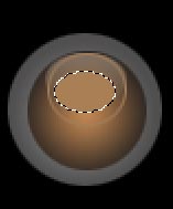 Сделайте выделение - зажмите Ctrl и щелкните по черному кругу в палитре слоев. Создайте новый слой. Установите основной цвет на коричневый #C08653, возьмите радиальный градиент и протяните его как показано на рисунке: