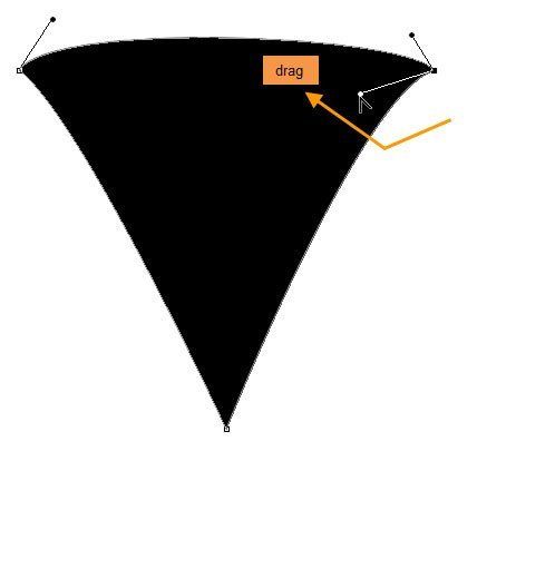 Сейчас у Вас по-прежнему должен быть выбран инструмент Угол (Convert Point Tool). Зажмите клавишу Alt и потяните нижний рычажок вправо вверх.