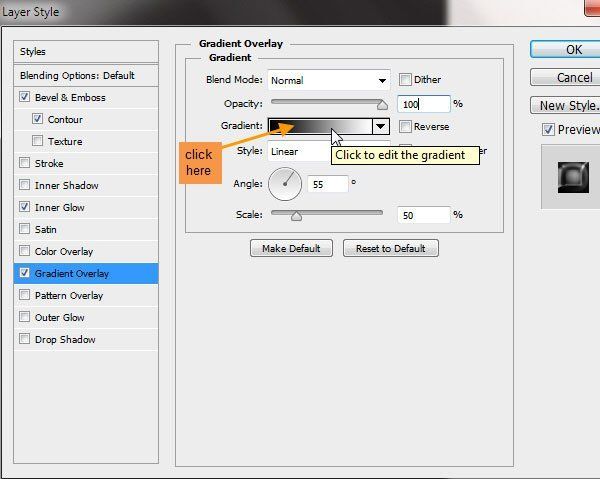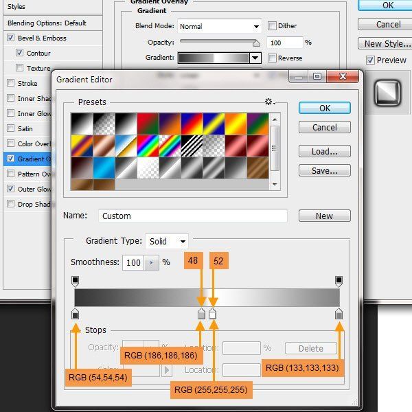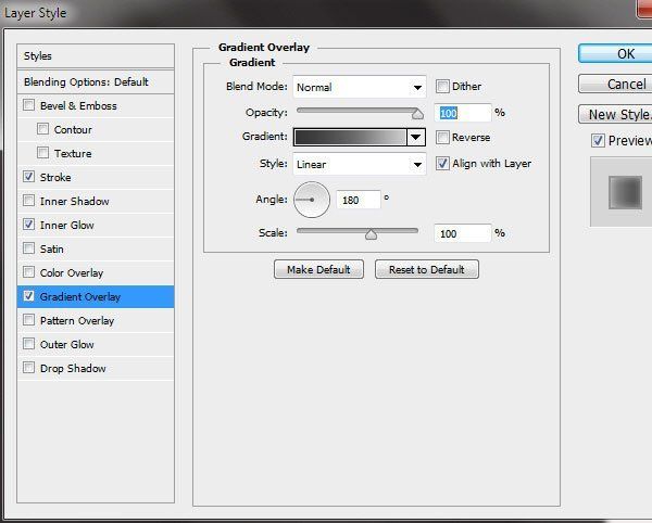 Мы почти закончили. Над фоновым слоем создайте новый слой «bg grd» и примените к нему следующие стили: