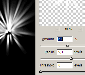 Теперь примените фильтр Sharpen - Unsharp Mask (Резкость - нерезкая маска) с настройками: