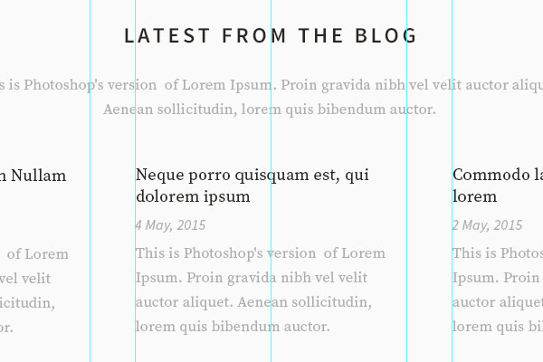 Теперь поместите все слои с постом блога в одну группу, затем дважды дублируйте ее, нажав Ctrl + J. Разместите копии между вертикальными направляющими, так само оставляя достаточно места по бокам.