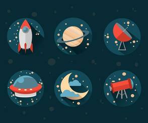 Вдохновившись последними событиями в исследовании космоса, мы нарисуем модные космические иконки в плоском стиле с эффектом длинной тени, используя простые фигуры и операции с контуром.