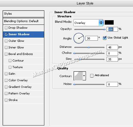 Щелките дважды на слое с новой фигурой, чтобы снова открыть палитру стилей. Примените следующие стили: