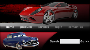 Создайте еще несколько форм. Разместите панель "поиск" как показано на картинке. Вырежите картинку машины, например Феррари, и разместите его слева от таблички "поиск".