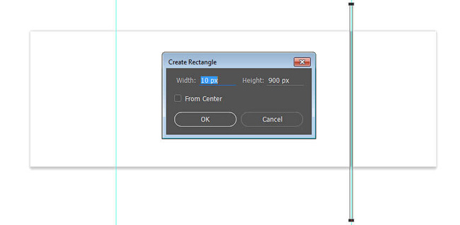 (U) (Прямоугольник) и выбираем любой яркий цвет, который будет выделяться на белом фоне (позже мы его изменим). Кликаем по рабочему полотну, чтобы вызвать окно Create Rectangle (Создать прямоугольник). В поле Width (Ширина) вводим 10 пикселей, а в Height (Высота) – 900 пикселей. Затем кликаем ОК и перемещаем созданный прямоугольник к правой направляющей.