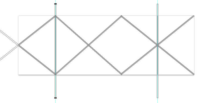 (A) (Выделение контура), чтобы выделить две диагональные линии. Затем копируем и вставляем их. Активируем свободную трансформацию и перемещаем копии так, чтобы их левые концы касались левой направляющей линии.
