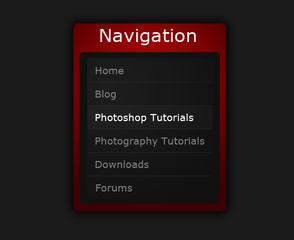 Шаг 9. Напоследок, нужно добавить цвет заднего фона за активной ссылкой (в моем случае я сделал активным Photoshop Tutorials). Для этого нужно создать новый слой за текстовым слоем, сделать выделение 210 на 30 пикселей, используя инструмент выделения Marquee Tool