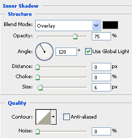 Создайте новый слой Слой > Новый > Слой (Layer > New > Layer) и заполните выделение любым цветом. После этого выберите Внутренняя тень (Inner Shadow) и примените следующие настройки: