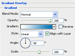 Выберите Наложение градиента (Gradient Overlay) и используйте такие настройки: