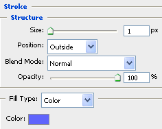 Теперь выберите Обводка (Stroke) и примените следующие настройки: