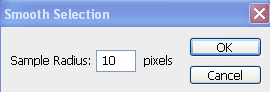 Теперь выполните следующие действия: Выделение > Модификация > Оптимизировать (Select > Modify > Smooth) и примените такие настройки: