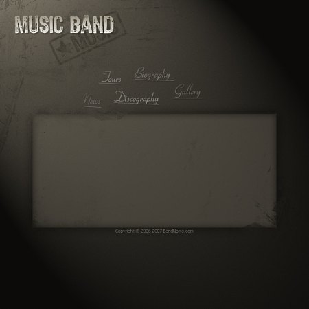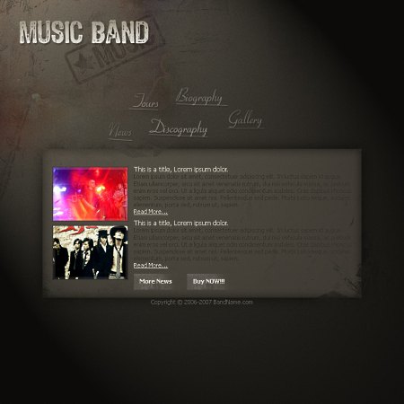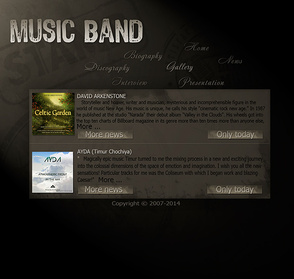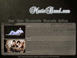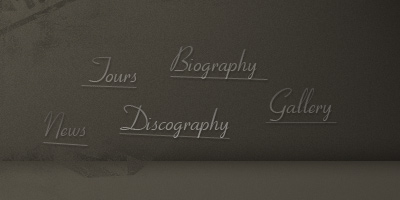 Шрифт, который использовал я называется Cornet, но я точно не помню бесплатный ли он, Вы можете найти любой каллиграфический шрифт на Photoshop-master. Пишем наш навигационный текст (News, Tours, Discography, Biography, Gallery,), применяем следуйщие стили слоя к слоям из текстом: