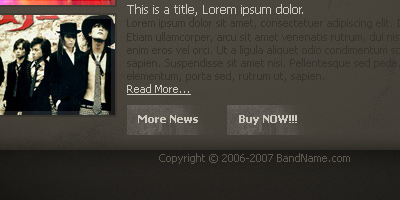 Сейчас вы можете добавить ненужный, но вероятный текст авторского права под областью с контентом. Я использовал шрифт Tahoma, 11pt, #5c584e. Ещё сюда подойдёт Arial.