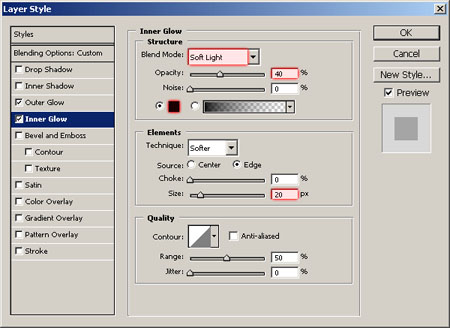 Каждому сайту нужна секция для контента, сделаем нашу. Сделаем прямоугольное выделение в центре документа. Заливаем его цветом немного светлее фона. Цвет, который использовал я, #716a5d. Я понизил заливку для слоя с секцией для контента до 40% и добавил такие стили слоя:
