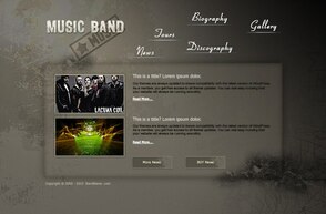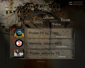 Придадим нашему сайту жизни, добавим ему текст. Начнём с добавления главного лого, текст: «Название группы» вверху слева. Я использовал шрифт 4990810, и размер букв 48pt. Это бесплатный шрифт, его можно взять в архиве. Для текста применяем цвет #c9c4b8. И добавим слою два эффекта: