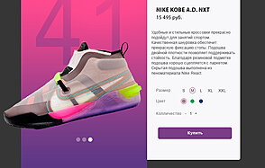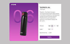 Форма визуально будет делиться на две части: в левой будет слайдер с фотографиями для отображения разных ракурсов товара, а с правой стороны расположиться вся нужная техническая информация о товаре и кнопка заказа.