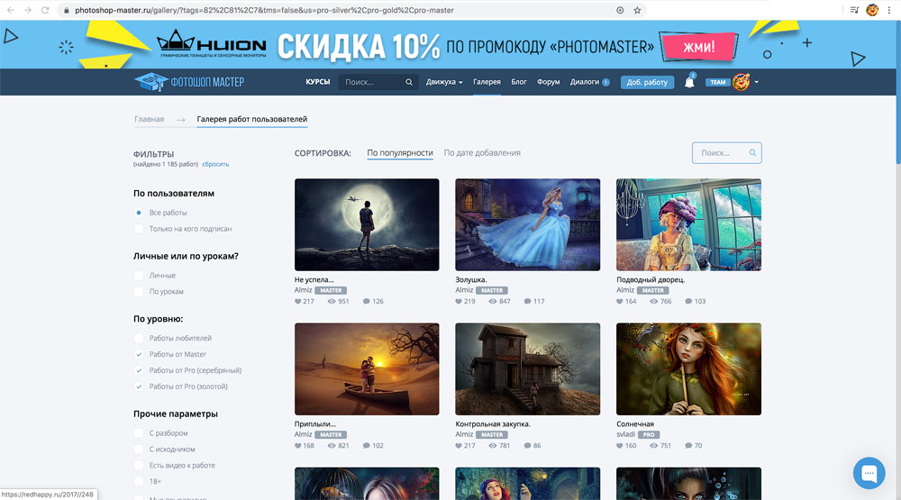 На «Фотошоп-Мастер» очень много людей и всех их объединяет одно: любовь к творчеству. Каждый свою любовь выражает разными способами: делает обработку фото, занимается коллажами, рисует. У всех разный уровень мастерства, многие развиваются и улучшают навыки.