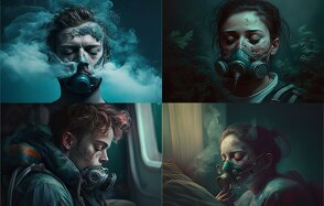 В Midjourney иллюстрация к строкам их Науитилус Помпилиус промт: I'm trying to forget how to breathe, To give you just for a minute, The gas that we didn't know how to appreciate, But you're asleep and you don't know —ar 3:2 —q 2.