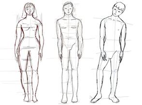 - Прикрепить 3 эскиза на один файл. (пропорции мужчины – женщины – домашнее задание)